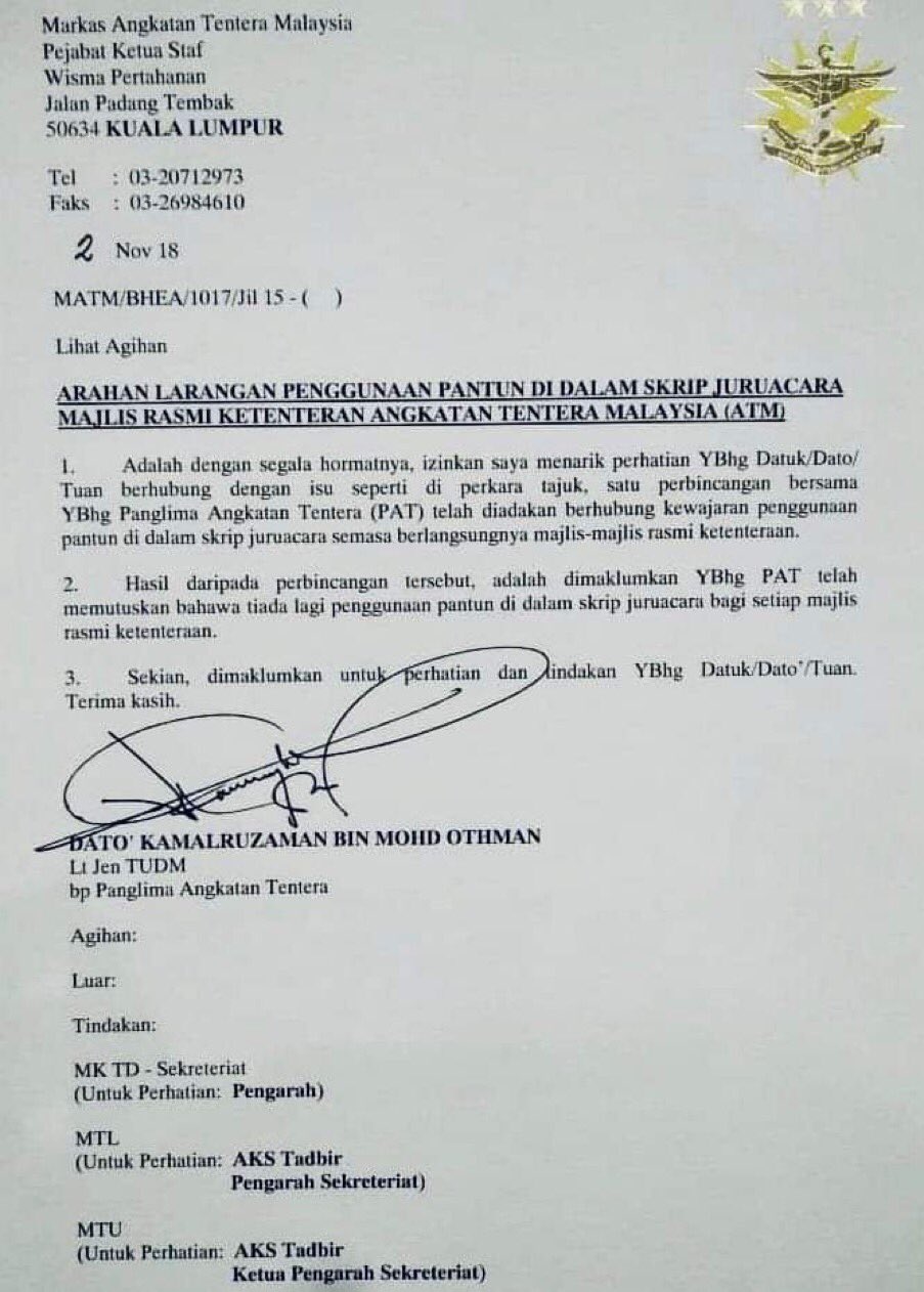 تويتر Annuar Musa على تويتر Angkatan Tentera Seharusnya Punya Falsafah Mempertahankan Tanahair Termasuk Agama Bahasa Dan Budaya Apakah Pantun Satu Ancaman Terhadap Atm Kenapa Turut Mengancam Budaya Sendiri Https T Co 2lxhugv5cs
